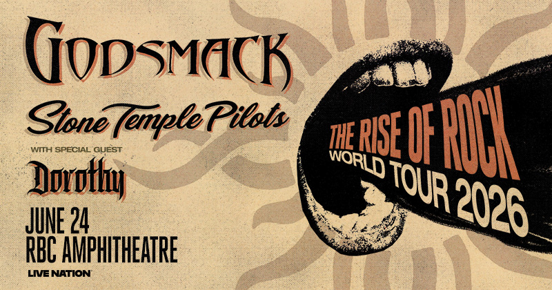 Multi-platinum rock titans Godsmack announced their massive GODSMACK — THE RISE OF ROCK WORLD TOUR 2026, a sprawling North American run featuring special guests Stone Temple Pilots and Dorothy. Promoted by Live Nation, the tour will bring Godsmack’s signature high-octane live show to amphitheaters nationwide.