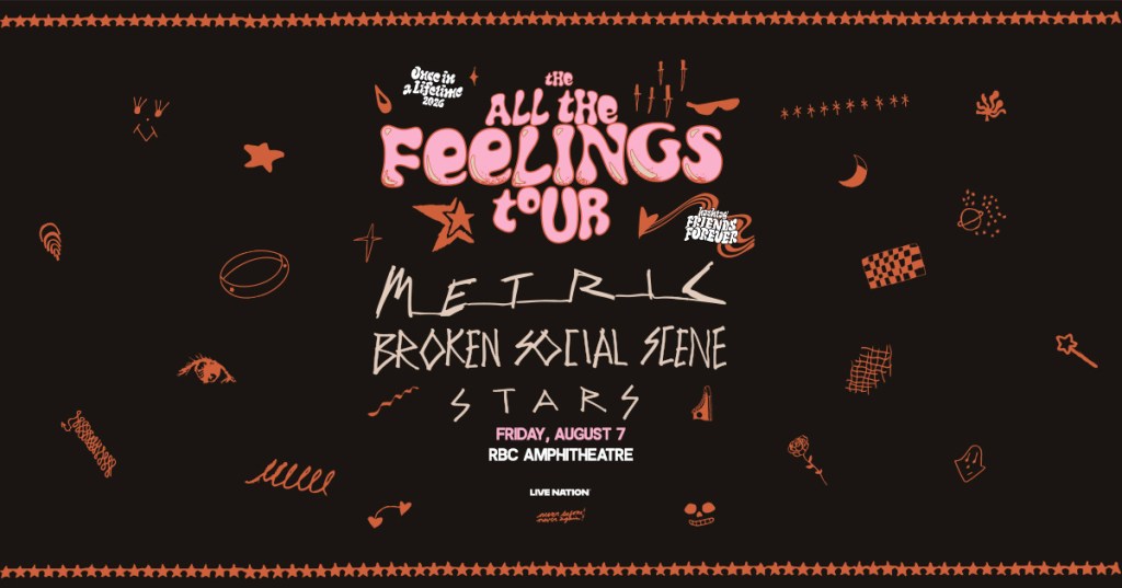 Longtime friends and acclaimed bands Metric, Broken Social Scene, and Stars announced the All the Feelings Tour, bringing their collective talents to stages across North America this summer. The 18-date tour, promoted by Live Nation, kicks off on Monday, June 8 in Austin, TX at Moody Amphitheater, before continuing with dates in Dallas, Denver, Phoenix, Bend, Chicago, Boston, and more before concluding with a homecoming show at RBC Amphitheatre in Toronto, ON on Friday, August 7.
