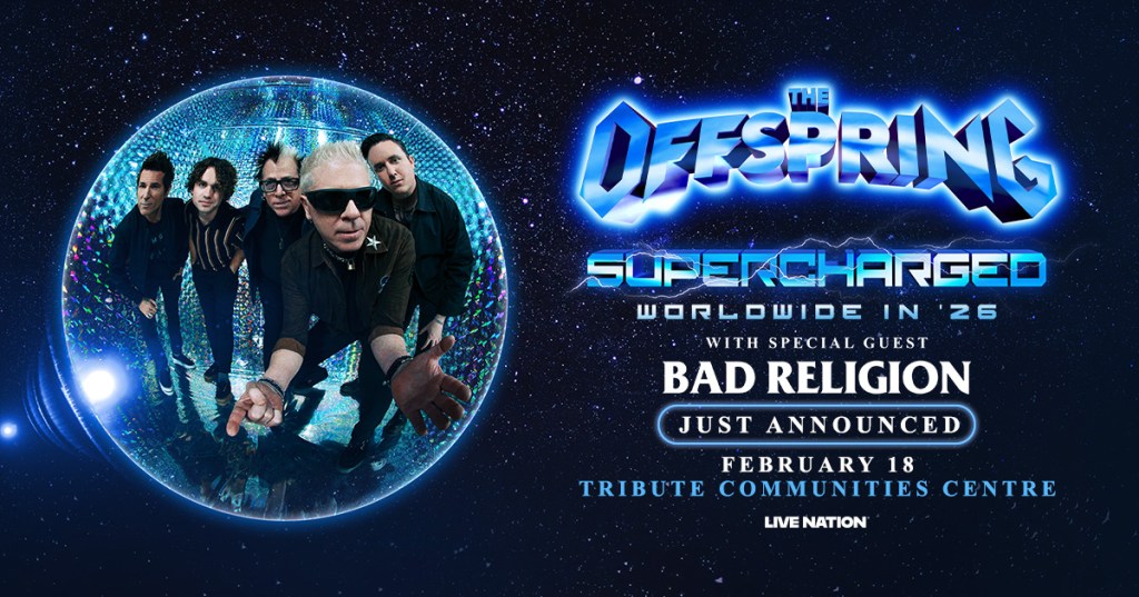 On the heels of sell-out runs across Australia, Europe, the UK and the U.S., punk rock legends The Offspring will bring their SUPERCHARGED Worldwide in ‘26 Tour to North America in early 2026 including a newly added, special show in Oshawa next week. Bad Religion will join as special guests.